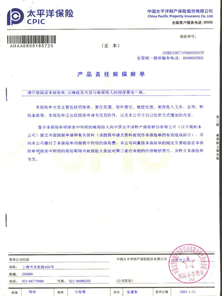 4000万产品责任险